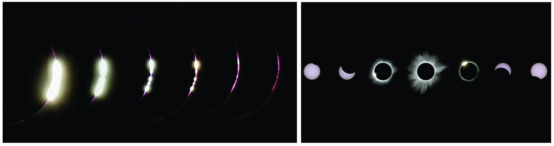 One unique phenomenon that occurs at the beginning and end of a total solar eclipse is known as Bailey’s beads. Bailey’s beads refers to small slivers of sunlight, or beads, that are still visible around the Moon during a total solar eclipse. These “beads” are the result of light filtering through the irregular surface of the Moon as a result of topographical features like mountains, craters, and valleys. Another unique view, known as the diamond ring effect, is seen when only one bead is visible. Bailey’s beads are named in honor of Francis Bailey (1174 – 1844) who provided an explanation for these small slivers of light in 1836.