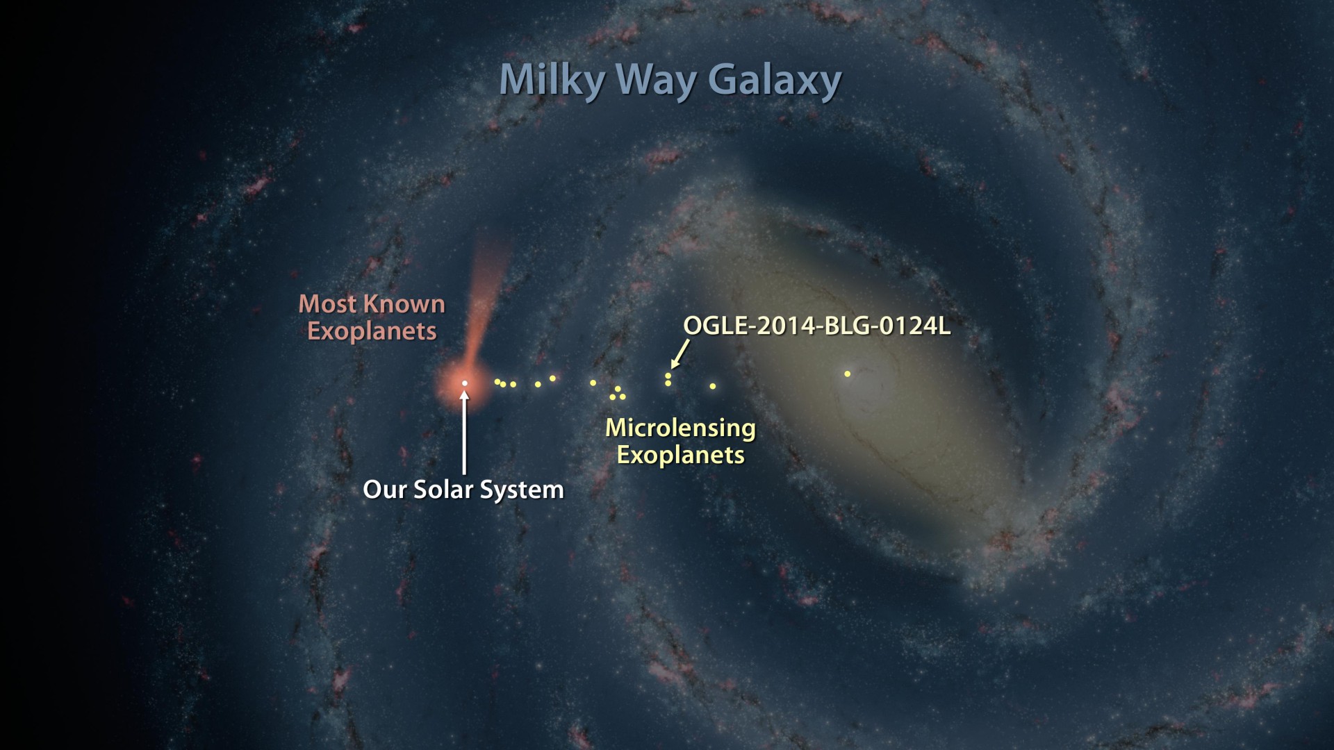 NASA’s Spitzer Space Telescope has recently made use of the gravitational microlensing method to discover OGLE 2014-BLG-0124L b, one of the most distant exoplanets known. OGLE 2014-BLG-0124L b was discovered in 2015 and is located approximately 13,000 light-years from Earth. OGLE 2014-BLG-0124L b is a gas giant that has a mass roughly equal to one-half that of Jupiter.