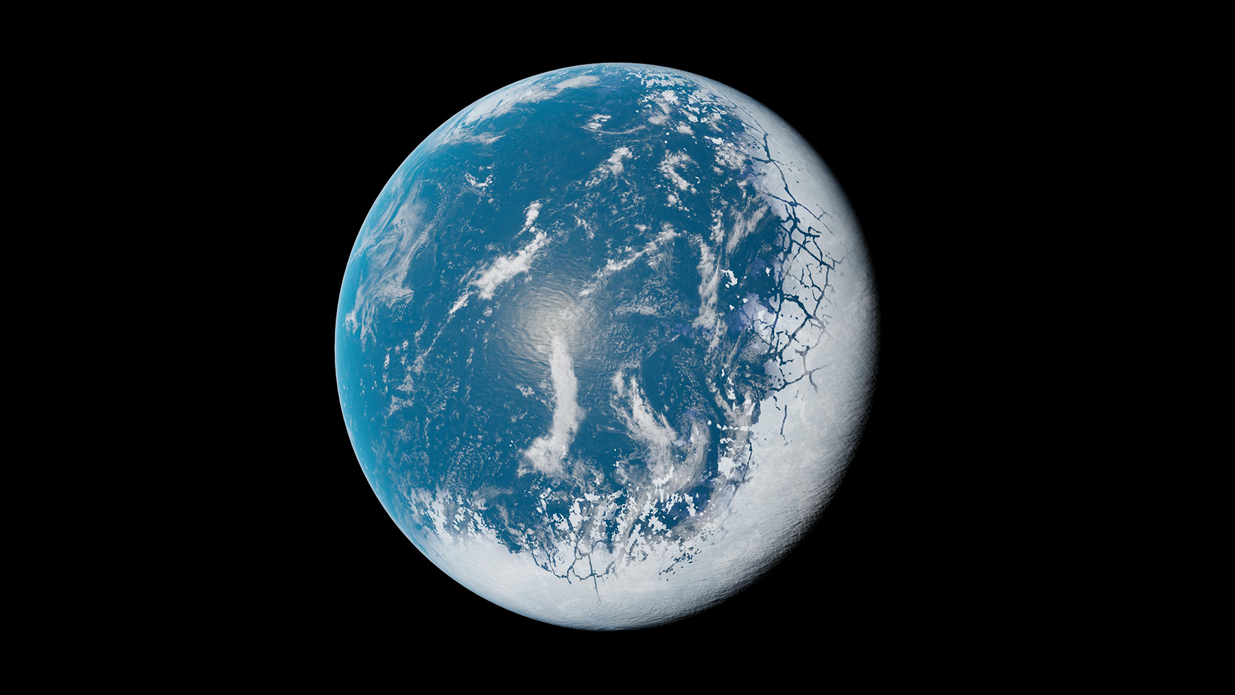 TRAPPIST-1f is the fifth closest planet to the star, and is well inside the habitable zone, orbiting in a near-circular orbit at a distance of only 5.55 million km (0.037 AU). It is approximately 68% the mass of the Earth and very slightly larger in radius. Its density is only 60% of Earth’s, suggesting it contains more interior water/ice or other light elements, similar to Jupiter’s moon Io. It receives only 38% of the solar irradiance that Earth does, giving it a mean surface temperature of 219 K (-54°C). Many regions could support surface water, conditions favorable to Earth-like life, if its lower gravity is sufficient to hold an atmosphere.