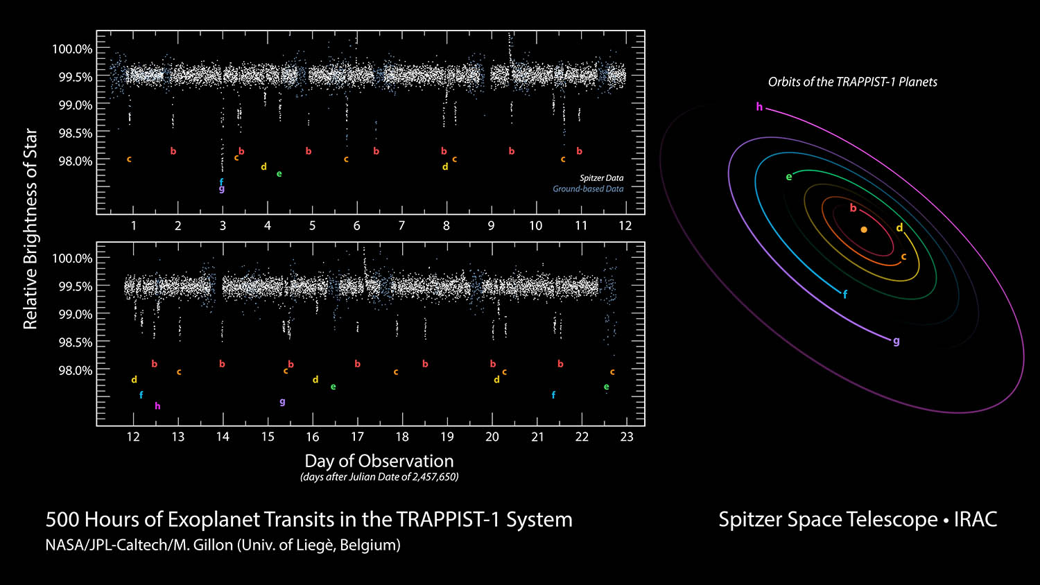 Apart from a few special exceptions, directly observing planets hidden in the glare of their stars is beyond our current technology. So we have to rely on indirect methods to detect and characterize them. By far, the easiest methods involve measuring the small effects that the planets have on their star. The most fruitful of these techniques has been Transit Photometry - measuring the dimming of a star’s light when its planets pass between us and the star. Radial Velocity and Stellar Astrometry are other methods that detect the subtle motions of stars caused by orbiting planets tugging on them gravitationally. The TRAPPIST-1 discovery used the transit method.