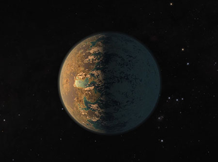 Based upon the brightness of the red dwarf star and the distance from the star, astronomers have calculated the amount of sunlight received on the surface of each planet compared to that received by Earth. Despite orbiting dramatically closer to their star, they receive amounts similar to our solar system. TRAPPIST-1b receives 4.25 times the amount of sunlight we get on Earth (a bit less than Mercury does), and TRAPPIST-1h receives one-eighth of what we receive (similar to what dwarf planet Ceres receives). The mean surface temperatures range from 400 K (127°C) for innermost TRAPPIST-1b to a chilly 168 K (-105°C) for distant TRAPPIST-1b. The planets in the habitable zone range between 251 K and 199 K (-22°C and -74°C), allowing their equatorial and temperate regions to have Earth-norm temperatures.