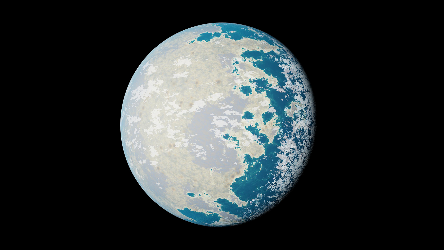 TRAPPIST-1d is the third closest planet to the star, orbiting in a near-circular orbit at a distance of only 3.21 million km (0.021 AU). The smallest planet, it is approximately 41% the mass of the Earth and 23% smaller in radius, making it somewhat larger than Mars. It has a density slightly lower than Earth’s, suggesting a silicate rocky composition similar to Earth, but with a slightly smaller iron core. It receives 1.14 times more solar irradiance than Earth, giving it a mean surface temperature of 288 K (15°C). Like Mars, its low gravity would have trouble retaining an atmosphere. Therefore it is not likely to be habitable.