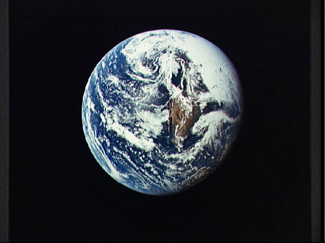Shortly after docking with the lunar module, the crew turned their TV camera and still cameras toward the Earth. Astronauts Stafford and Young described the view for Capsule Communicator/astronaut Charlie Duke in Mission Control.