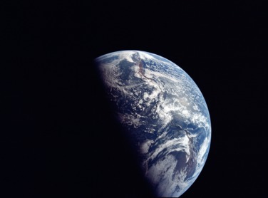 Bean: The Earth doesn't seem to be getting smaller too fast right now, but it is sort of funny. It just seems to hang out there. It doesn't - You can't see it rotate, you can't see it move or anything. It just sort of hangs out there in this black space, and the moon just doesn't seem to be any bigger than it was when we left, but it looks more like a sphere also. It sort of looks like a ball that is being hung out there somehow. It's really crazy.