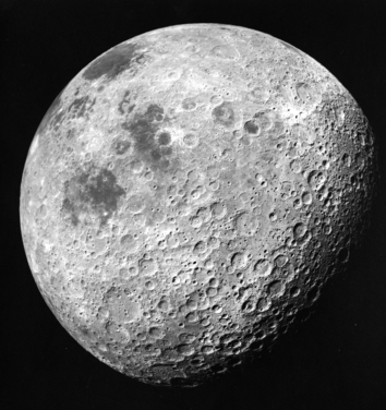 The Mapping camera in the Service Module took this picture of the moon soon after leaving lunar orbit.